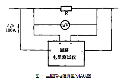 GIS各元件安装完成后,一般在抽真空充SF6气体之前进行主回路电阻测量。测量主回路的电阻,可以检查主回路中的联结和触头接触情况,应采用直流压降法测量,测试电流不小于100A。若GIS有进出线套管,可利用进出线套管注入测量电流进行测量。