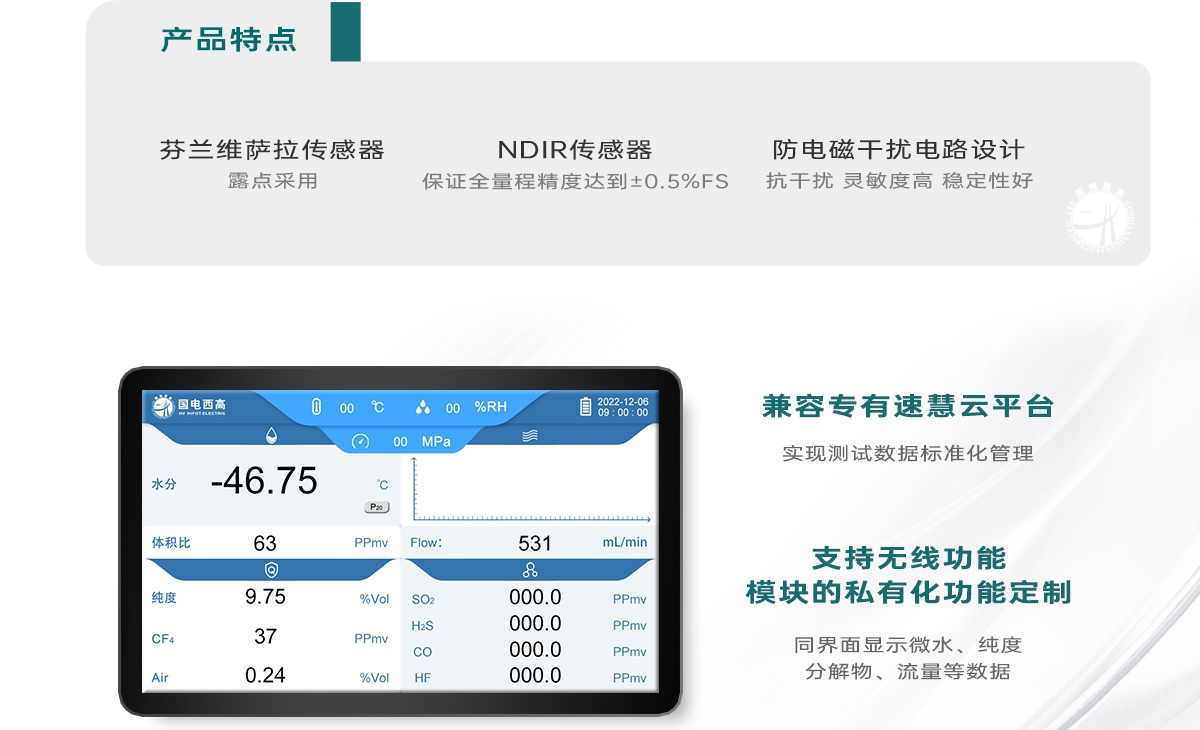 1、水分测量:  SF6和其它气体调节在400~600mL/min