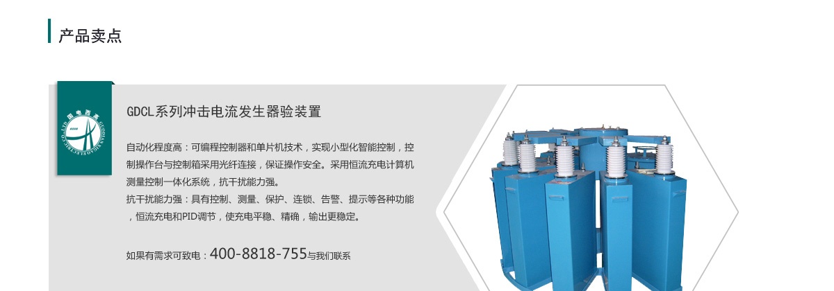 GDCL系列适冲击电流发生器用于10kV(残压100kV)及以下电压等级的避雷器及阀片进行标准雷电冲击电流,主要用来考核在过电压情况下非线性电阻片耐受长时间冲击电流的能力。