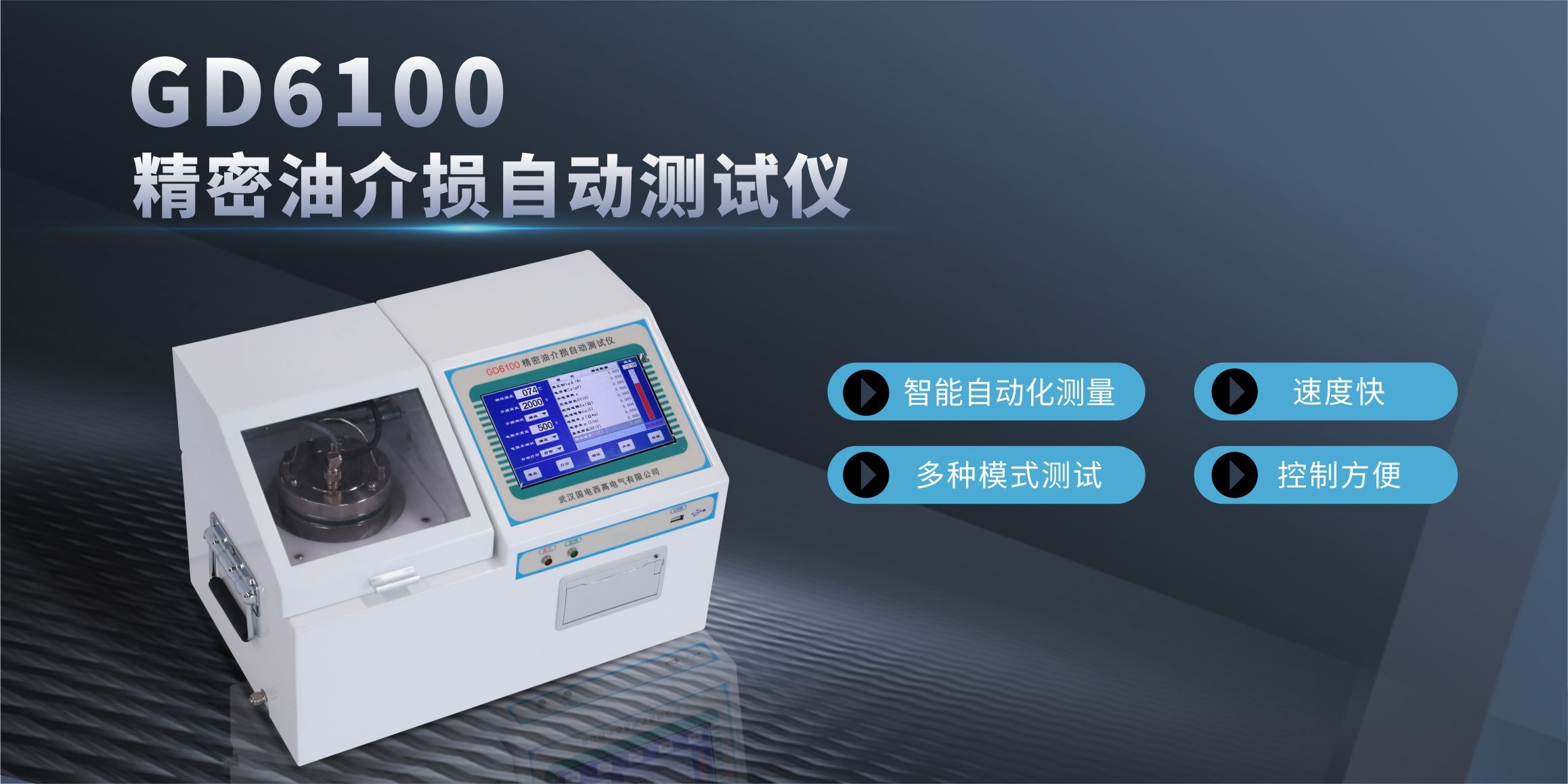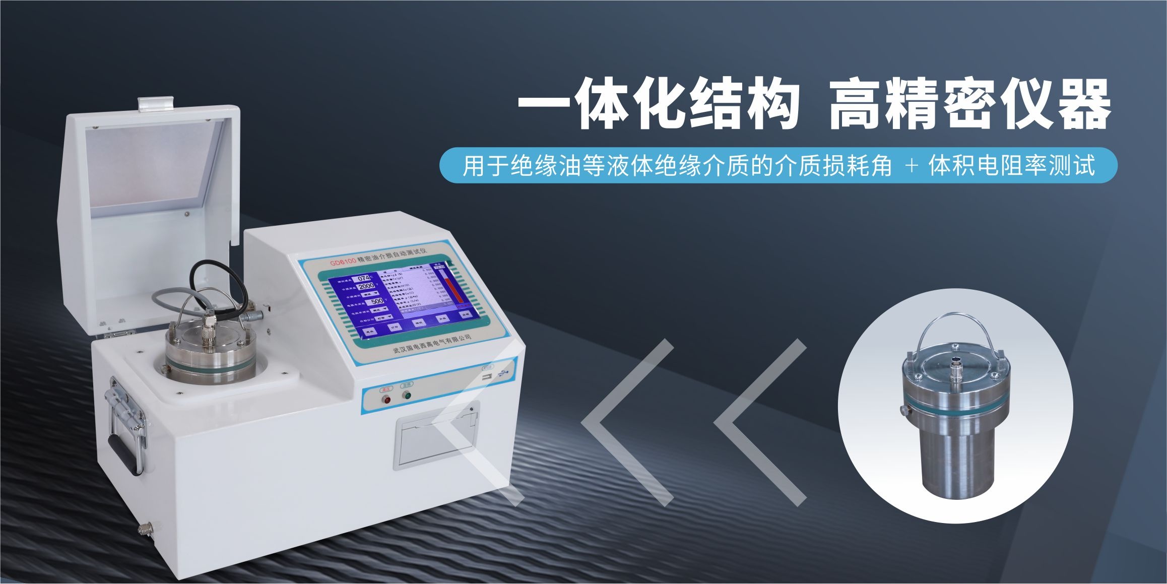 GD6100精密油介损自动测试仪是用于绝缘油等液体绝缘介质的介质损耗角及体积电阻率测试的一体化结构的高精密仪器。内部集成了介损油杯、温控仪、温度传感器、介损测试电桥、交流试验电源、标准电容器、高阻计、直流高压源等主要部件。其中加热部分采用了当前最为先进的高频感应加热方式,该加热方式具备油杯与加热体非接触、加热均匀、速度快、控制方便等优点。交流试验电源采用AC-DC-AC转换方式,有效避免市电电压及频率波动对介损测试准确性影响,即便是发电机发电,该仪器也能正确运行。内部标准电容器为SF6充气三极式电容,该电容的介损及电容量不受环境温度、湿度等影响,保证仪器长时间使用后仍然精度一致。