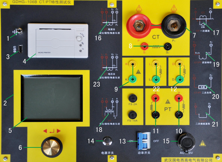 CT/PT互感器特性测试仪面板结构与注释