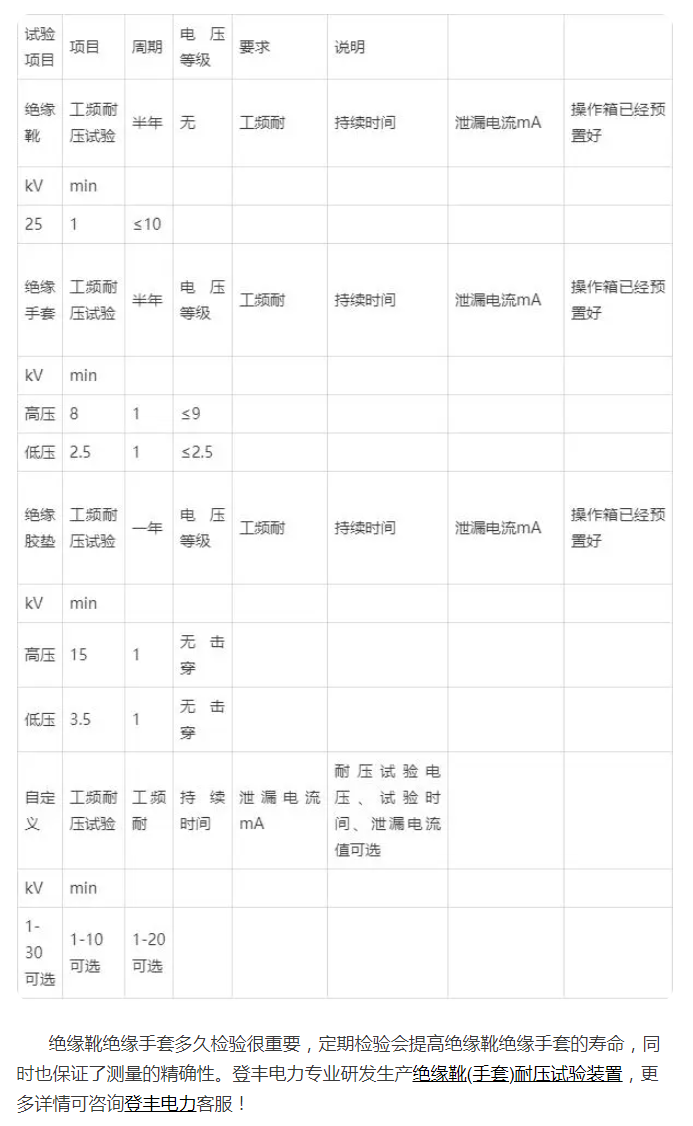 绝缘靴绝缘手套多久检验,接下来国电西高给出一个详细的表格: