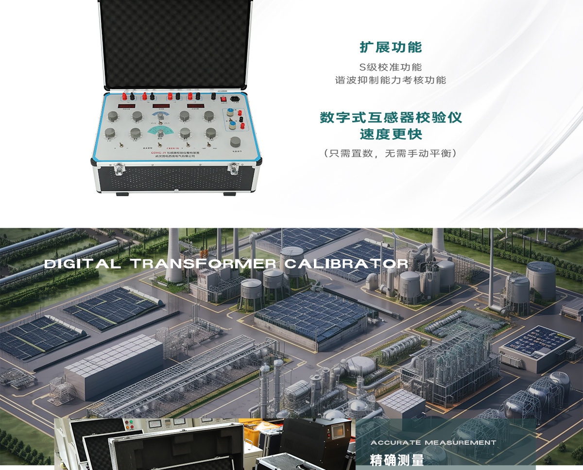 GDHG-JY互感器校验仪整检装置可以按照检定规程要求整体检定互感器校验仪的准确度。特别是该套装置经过精心设计扩展功能,S级校准功能,谐波抑制能力考核功能,对被检校验仪百分表考核功能等,使该套装置能够不需要其它辅助设备即可按照规程要求对众多互感器校验仪进行检定。