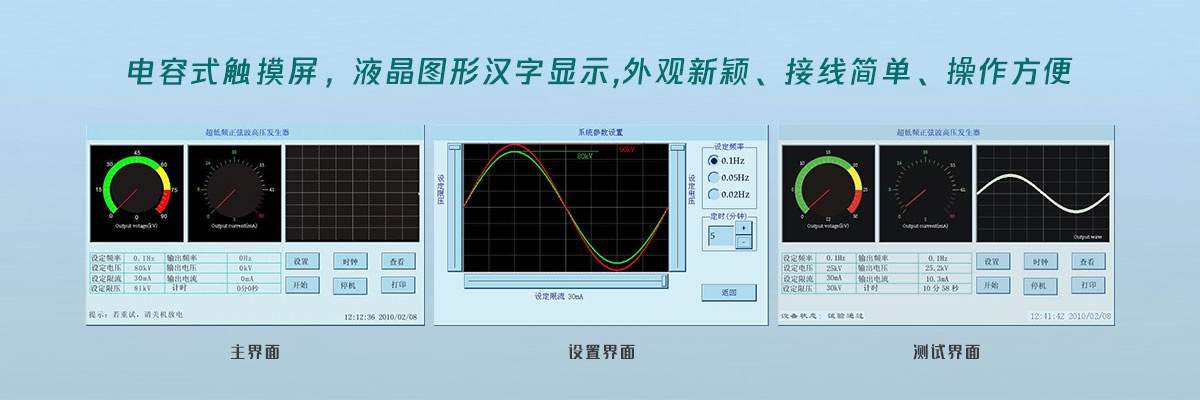 我司GDVLF系列 0.1Hz 超低频耐压试验装置”采用最新电力电子元器件和最新 ARM7 单片机技术,进一步降低了设备的体积和重量,傻瓜式操作,性能更稳定,克服了第一代机械式升压器使用寿命短、故障率高、体积大的缺点。特别适用于绝缘等值电容较大的电气设备(例如:电力电缆、电力电容器、大中型发电机和电动机等)耐压试验,符合 2004 年国家新颁布电力行业标准《超低频高压发生器通用技术条件 DL/T849.4-2004》要求。