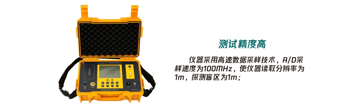 • 测试精度高:仪器采用高速数据采样技术,A/D采样速度为100MHz,使仪器读取分辨率为1m,探测盲区为1m;