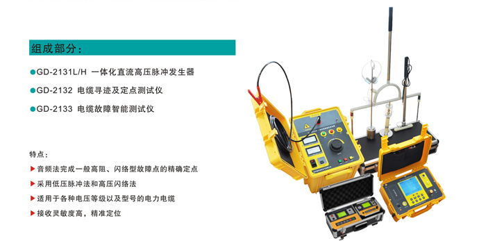 GD-2136系列电缆故障测试系统集成了测距、定点以及路径探测等功能,能对电缆的高阻闪络故障、高低阻性的接地、短路和电缆的断线,接触不良等故障进行测试,适用于测试各种不同型号、不同电压等级的电力电缆及通信电缆。