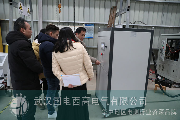 这是准备试验中的工频耐压试验设备以及大电流发生器。客户在现场观看了试验从接线到试验的全过程,期间段工、罗工、夏工也为客户详细讲解了设备使用过程中应注意的事项。验货完毕,客户对 国电西高的实力有了直观的认识,对国电西高的服务做出了高度评价。